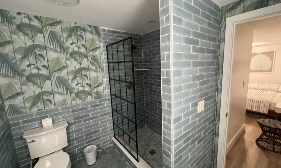 Modern newly renovated bathroom at Driftwood Motel in Point Pleasant Beach, NJ